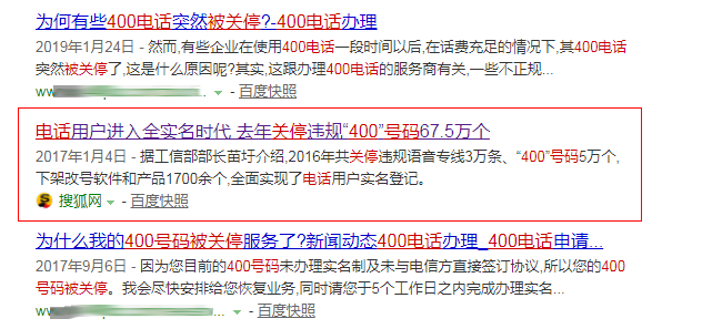 非正規渠道號碼由于其來路各異,所以管理起來也不規范,有的號碼無法向運營商提交實名認證,雖然這些小代理公司也讓用戶填寫實名認證的資料,但是運營商根本不審核這些號碼的認證資料,所以這些資料填寫了以后也屬于無效。那么這些辦理出來的400號碼就如同黑戶手機卡一樣,運營商不嚴格管理的時候,可能還可以正常使用,但是一擔嚴格管理的時候,就會隨時關停這些號碼。