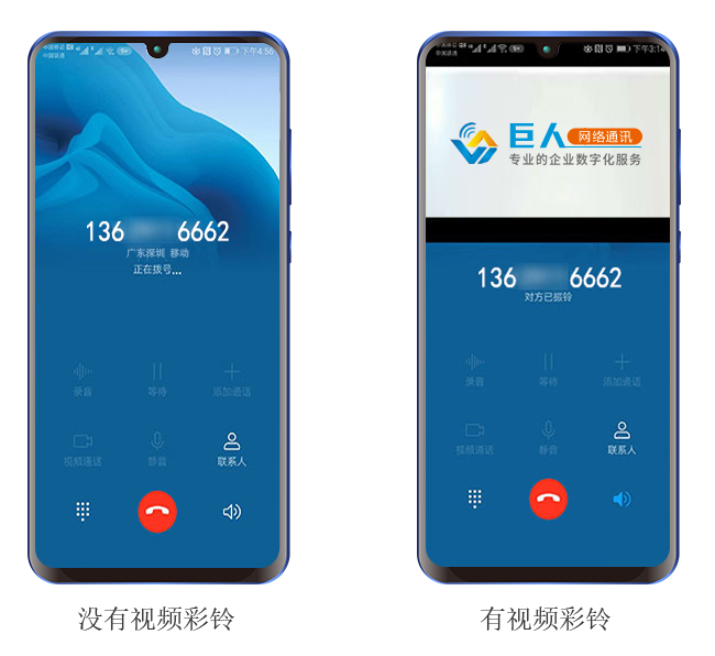 視頻彩鈴是運營商推出的基于4G網絡的VoLTE(高清語音)服務。將“聽到的彩鈴”演變成“看到的視頻”。客戶在運營商VoLTE網絡下撥打視頻手機,在等待接通前,會看到一段企業定制的視頻廣告內容。