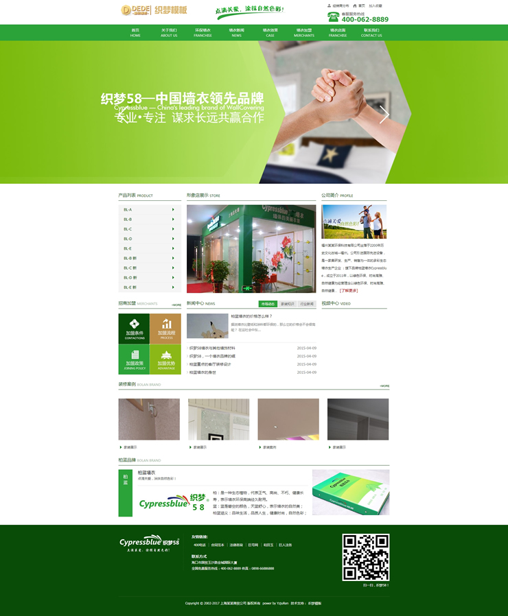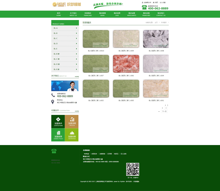 模板編號:     B1658 大氣綠色環(huán)保墻衣涂料類網(wǎng)站織夢源碼