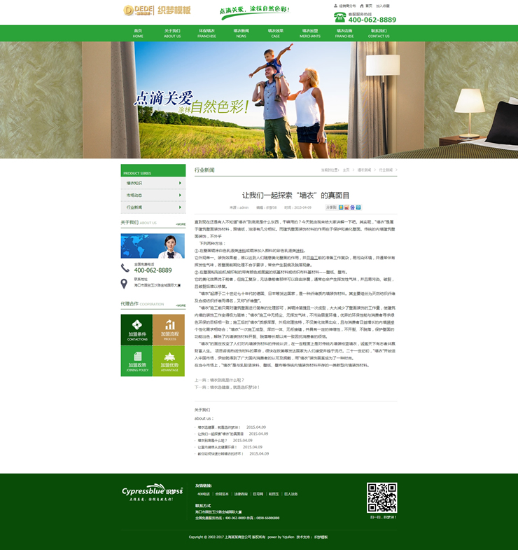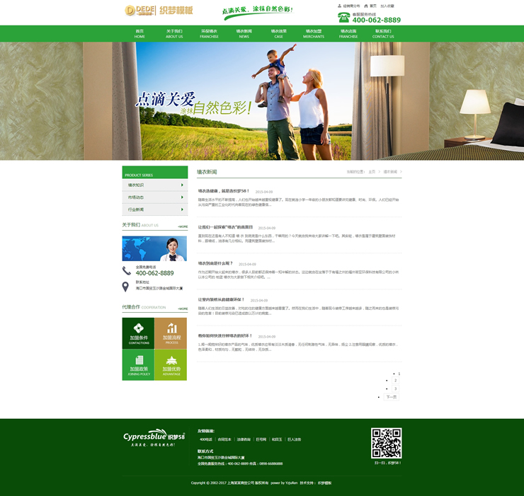大氣綠色環(huán)保墻衣涂料類網(wǎng)站織夢源碼