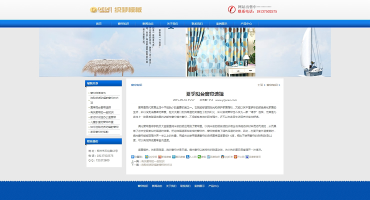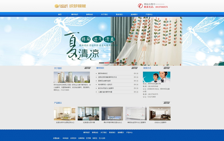 模板編號:     B1776 簡潔窗簾布料企業通用網站織夢模板