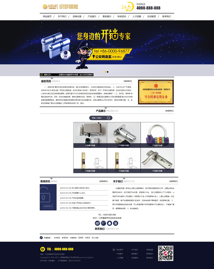 模板編號:     B2092 藍黑風格生活服務行業網站源碼 家政開鎖織夢模