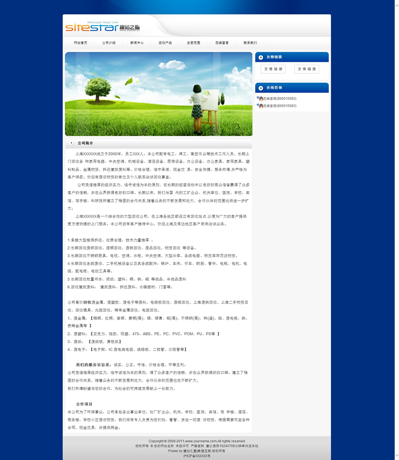 二、本模板可免費提供給廣大建站愛好者學習使用,但不提供任何形式的咨詢解答服務。為了尊重本公司的設計成果,請使用模板時添加本站網址為友情鏈接,否則本站將追究其版權使用的權限。