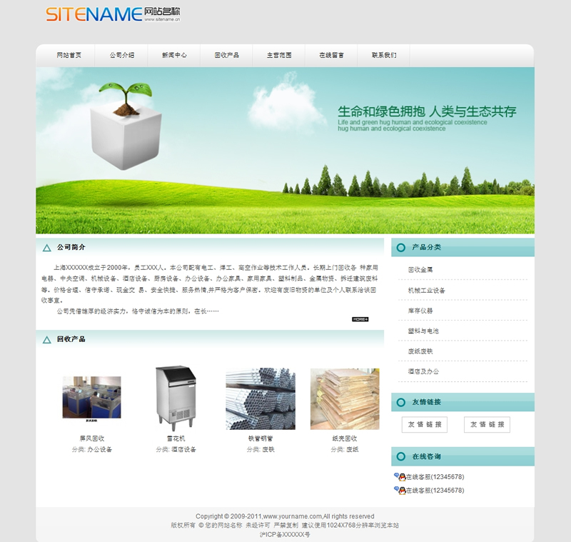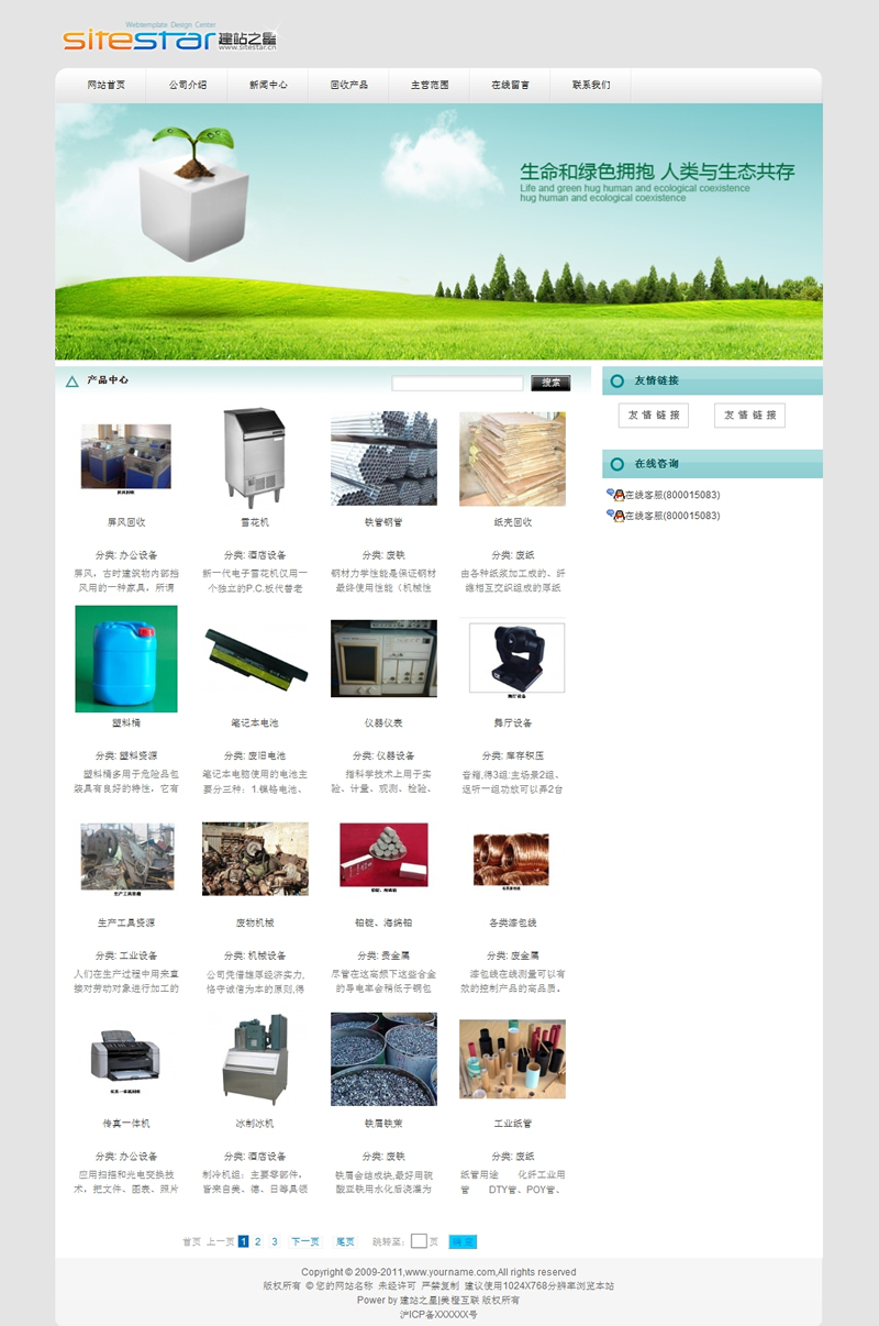 模板編號(hào):     S1157 廢品回收公司環(huán)保資源企業(yè)建站模板
