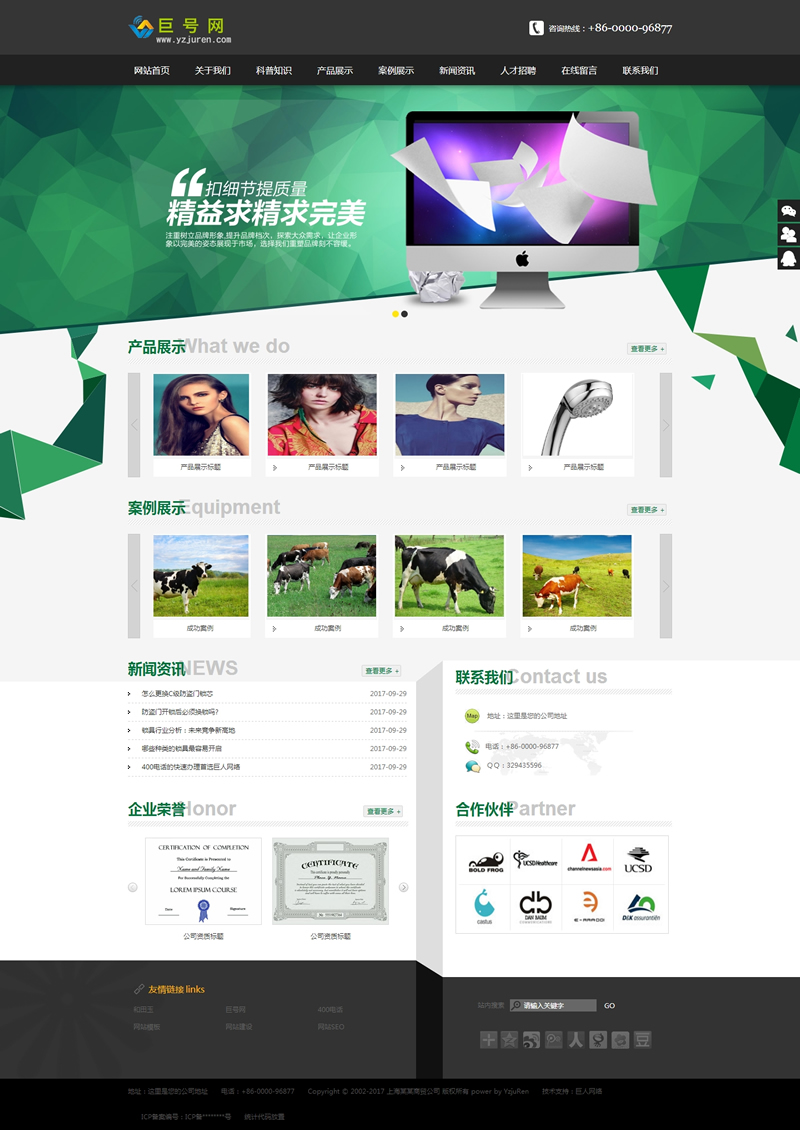 一、整套模板純手寫div+css代碼,符合W3C標準,完美兼容 IE6/7/8/9/10、Firefox、Chrome、Opera、Safari、360瀏覽器等主流瀏覽器,經測試無錯位,加載速度飛快。