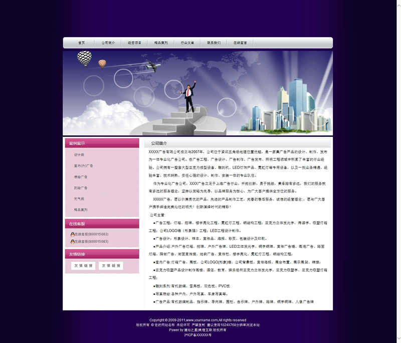二、本模板可免費提供給廣大建站愛好者學習使用,但不提供任何形式的咨詢解答服務。為了尊重本公司的設計成果,請使用模板時添加本站網址為友情鏈接,否則本站將追究其版權使用的權限。