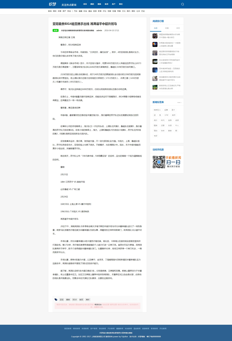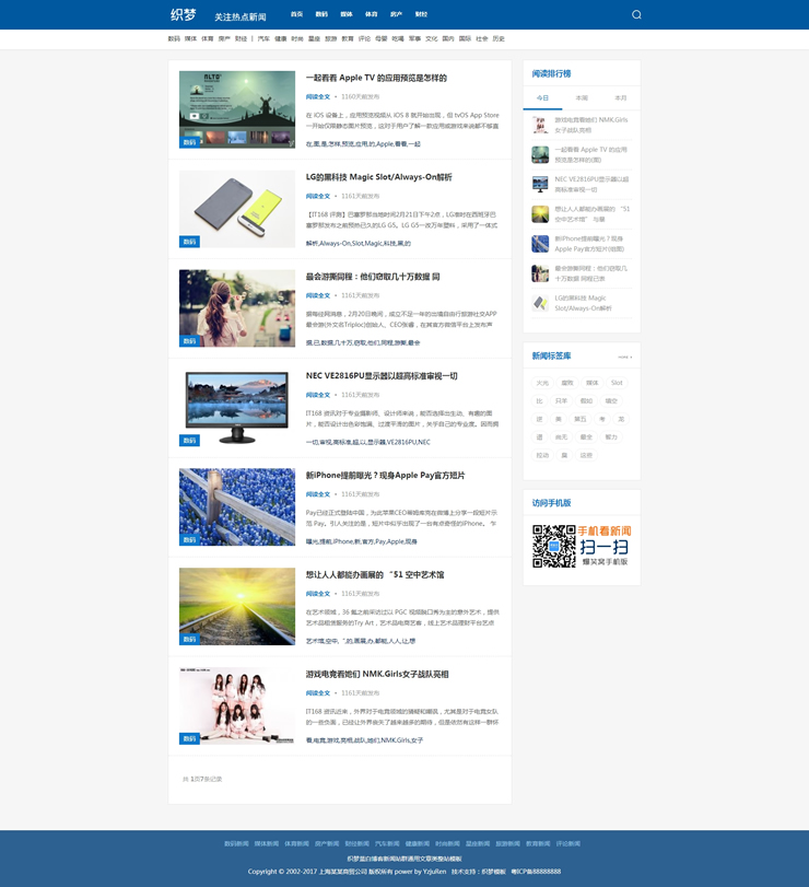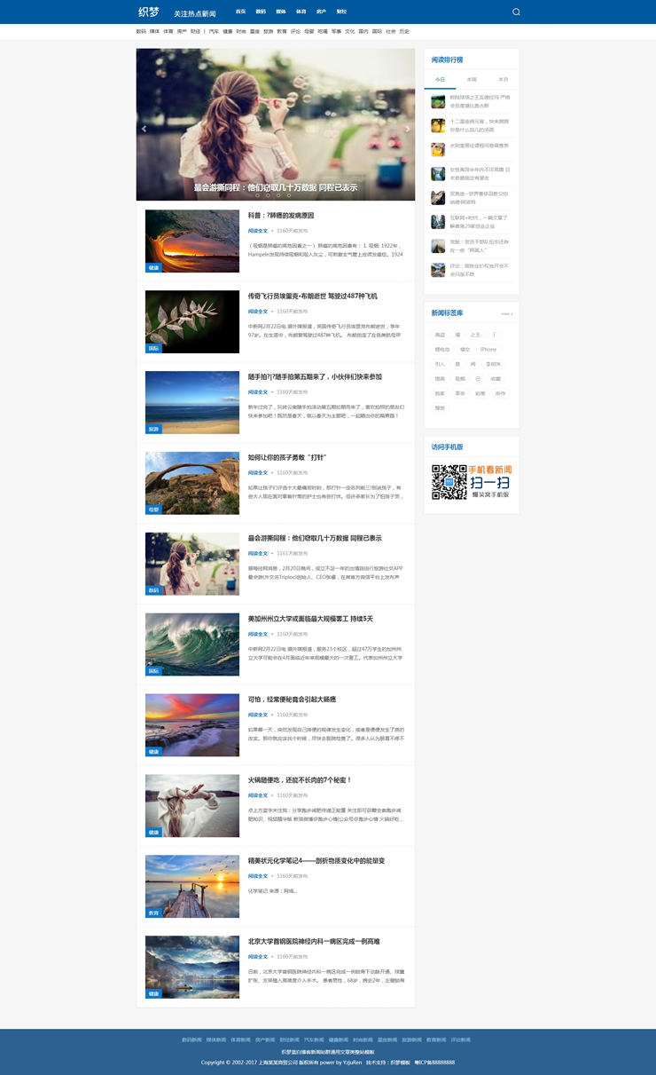 主頁 > 網站建設 > 網站模板 > 資訊、博客、展銷、其它 > 藍白博客新聞站群通用文章類整站模板