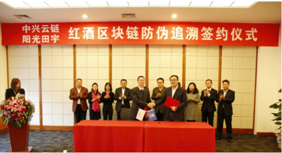 12 月 7 日下午,中興云鏈技術有限公司和內蒙古陽光田宇葡萄釀酒有限公司在京舉行紅酒區塊鏈防偽追溯簽約儀式。雙方將以區塊鏈紅酒溯源防偽項目為開端,在精準扶貧、智慧能源等領域展開全方面的基于區塊鏈的戰略合作。本次簽約標識表記標幟著國內第一個應用區塊鏈技術打造“自然酒”的項目正式落地。