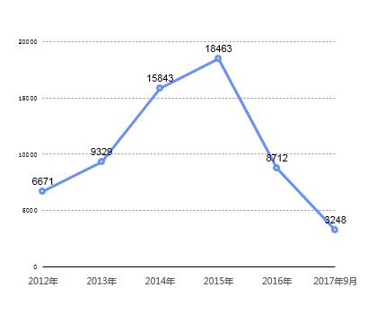 也許是本錢市場趨于謹慎,又或者因為諸如余佳文、王凱歆等“創(chuàng)業(yè)明星”們跌得過于慘烈,比擬于 2015 年, 2016 年、 2017 年的創(chuàng)業(yè)數量在持續(xù)下滑中,創(chuàng)業(yè)熱情有所下降。陳訴顯示, 2017 年截至 9 月的創(chuàng)業(yè)數量還不到 2015 年的四分之一。