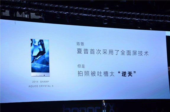 榮耀總裁趙明并沒有開篇就吹捧自家全面屏新品多么牛逼,多么無敵,而是首先向全面屏手機鼻祖——夏普致敬。