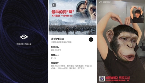 作為《猩球崛起3》電影深度合作伙伴,網(wǎng)易洞見則以增強(qiáng)現(xiàn)實(AR)的方式,為廣大影迷貢獻(xiàn)了一場生動的人猿同“萌”。