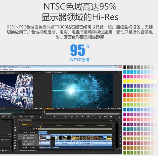 那么面對(duì)種類繁多的擁有差別色域尺度的顯示器時(shí),我們究竟該如何挑選?以HKC推出的T7000 鉆石版專業(yè)顯示器為例。官方標(biāo)稱的NTSC 色域覆蓋高達(dá)95%,Adobe RGB色域覆蓋高達(dá)99%,sRGB色域覆蓋更是達(dá)到100%,完全超越市面上大部分主流品牌顯示器色域覆蓋范圍。