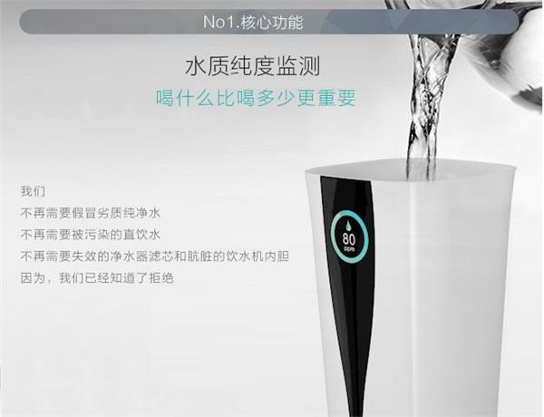 【安適:水質檢測】水進入杯中,秒速檢測水質PPM(一升水中含有多少雜質)值,并實時顯示在水杯上,參考國內純凈水水質尺度,即能分辨是否為假冒偽劣純凈水,或判斷凈水設備濾芯是否需要更換。