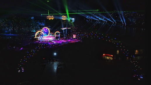 除無人機(jī)“鵲橋”外,零度智控的無人機(jī)在本年的七夕晚會(huì)上可謂大顯身手,展示了科技與藝術(shù)結(jié)合的多種舞臺(tái)演出形式。在晚會(huì)開場(chǎng)環(huán)節(jié)中,7架代表仙女湖七仙女的特制無人機(jī)扮作燈籠形狀陪同湖面上的郵輪飛抵晚會(huì)現(xiàn)場(chǎng),為晚會(huì)的開場(chǎng)揭幕。該演出使用了目前最先進(jìn)的室外無人機(jī)定位技術(shù)GPS+RTK,使得無人機(jī)能夠基于平滑的水面,不變的進(jìn)行飛行和演出。