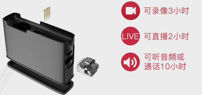 可持續錄像 3 小時/直播 2 小時/通話音頻 10 小時。