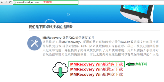 如下圖在瀏覽器的地址欄中輸入MMRecovery產品的官方網址 ( ),打開官方網頁后在網頁中找到下載鏈接地址并點擊進入下載頁面。進入微云下載頁面后,,首先勾選分享的zip壓縮文件,然后點擊下載按鈕開始下載,該工具是綠色軟件下載后解壓一下就可以直接使用了。如果恢復過程中有困難,可以參照軟件包中的操作指南來完成相關的恢復操作。
