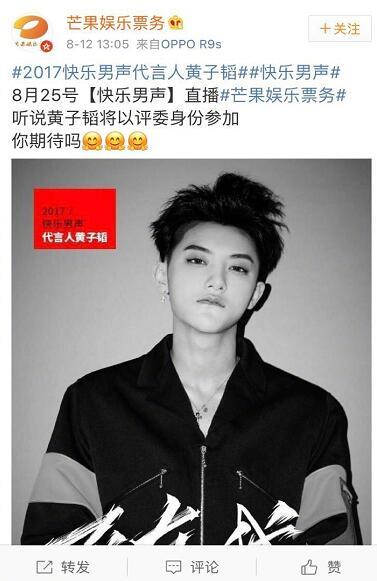 在即將開始的 5 進 4 全國賽中, 2017 快男的代言人黃子韜也將壓軸回歸,與李健、陳粒等導師一起進行專業點評。黃子韜曾是EXO的核心成員,不管是唱功、舞蹈、外形綜合實力都身居一線偶像尺度,與前EXO其它中國成員吳亦凡、鹿晗、張藝興也是親密戰友。上屆超女選用吳亦凡為代言人,這次選用黃子韜,看來快男的冠軍尺度必然是靠人氣號召力實力等方面綜合產生的。