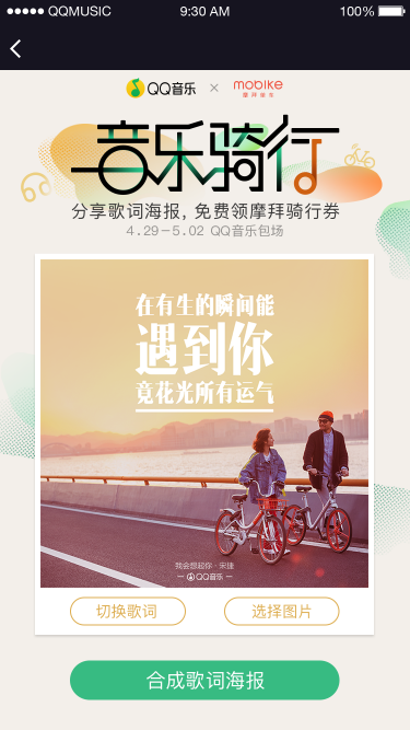 以“Music Your Life”的品牌理念為導向,QQ音樂一直在嘗試新的突破。在此之前,基于IP內容,,QQ音樂與漫威合作,給漫威迷們帶來了福利;基于場景內容與摩拜單車合作,在用戶騎行時提供恰當的音樂。通過多元場景跨界將娛樂和生活場景進行保持,讓音樂真正的滲透到生活中,滿足用戶更深層次的音樂需求。在體驗經濟時代,這種品牌之間的跨界場景化營銷是一種創新,將為各個音樂平臺提供營銷新思路,同時也為品牌開辟了營銷新玩法。