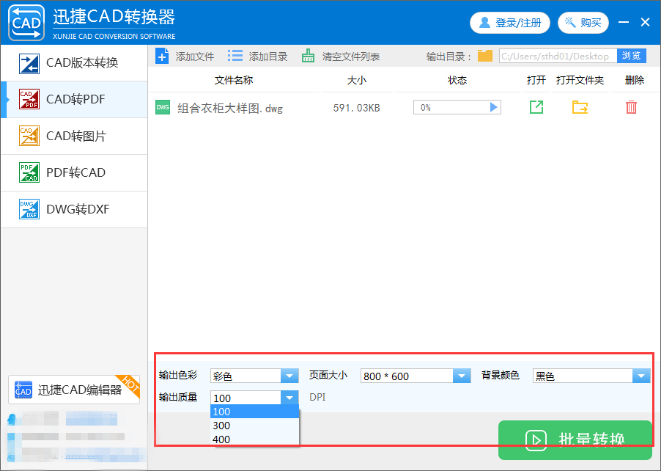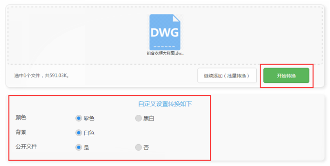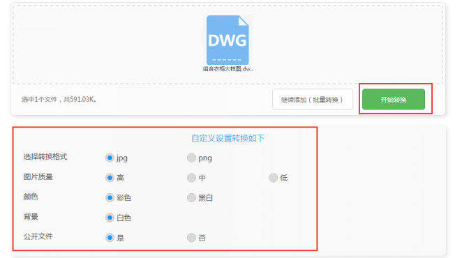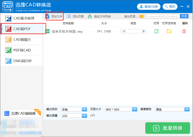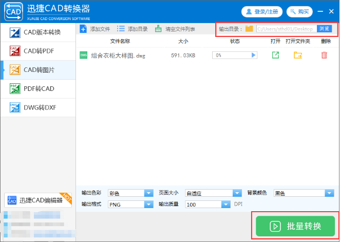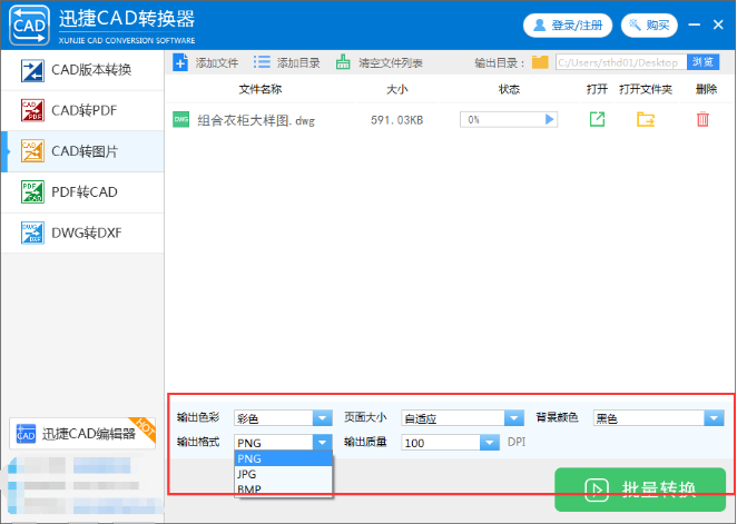 (1)選擇“CAD轉圖片”功能,完成文件的添加;