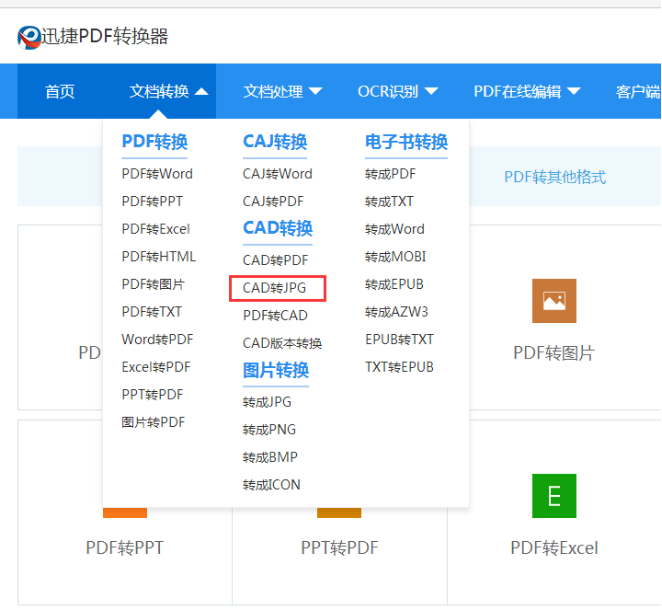 同樣是將鼠標移動到“文檔轉換”,點擊“CAD轉JPG”;