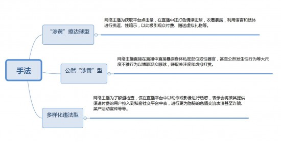 可能不少人會認為,“黃播”只是個別主播出于個人偏好或者迅速成名等動因以身犯險,屬于個別現象。事實上,“黃播”背后潛伏一個精心設計的規模化、組織化、產業化的黑色產業鏈條,其從技術到運營都進一步擴展了直播產品和社交平臺的信息安適風險邊際,監管部門和平臺主體雙雙面臨巨大的監管壓力。