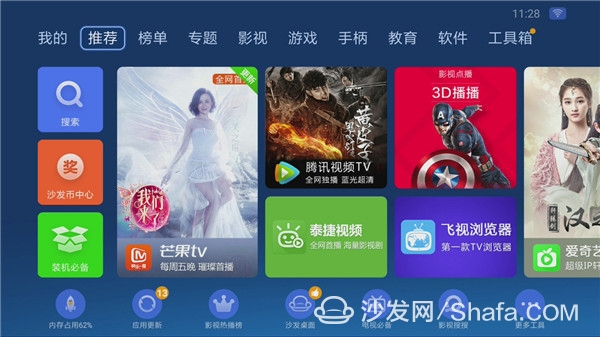 用智能電視看點(diǎn)播視頻,保舉使用電視貓,看電視直播,保舉用HDP直播;更多有趣的內(nèi)容,請用騰訊視頻TV版、優(yōu)酷視頻TV版等;玩轉(zhuǎn)智能電視及盒子,更多精彩內(nèi)容盡在沙發(fā)管家。