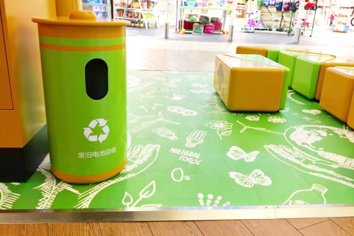 愛回收嘉里中心全新升級的環保辦事站拋開固有“數碼產品回收”的印象,從社會責任與品牌形象的角度展示愛回收的辦事與理念。為了增加與兒童之間的互動體驗,愛回收將店面近三分之一的區域設計為休息區,采用積木設計的卡通風兒童座椅和墊子,并配以電視熒幕播放兒童喜愛的節目。愛回收一方面希望孩子可以在商場內擁有一個固定的休閑區域,也喜歡借由孩子休閑娛樂的同時,通過綠色電池回收桶引導兒童回收廢舊電池,從小培養環保意識。