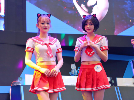每年Chinajoy活動中各大展臺的showgirl們也是眾多男玩家參展的一大期待。本年的旗娘小姐姐可以說是本屆showgirl中的一股清流,在showgirl們都爭相露肉的風氣下,旗娘們以清新的紅藍水手服表態展臺吸引無數粉絲駐足,活力四射的宅舞《極樂凈土》也讓現場宅男們熱血噴張。