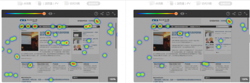 例如:上圖是某網站新老訪客在頁面的瀏覽行為對比,從導航欄的點擊熱圖就能看出差別屬性的用戶群體對頁面內容的關注點是有差異的。
