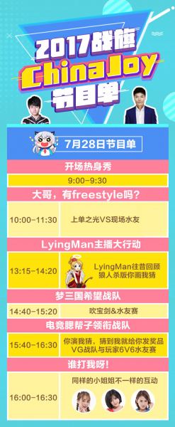 當天活動直播詳情請點擊https://www.zhanqi.tv/topic/cj2017