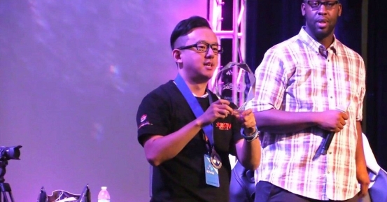 Q: 我們都知道EVO已經連續舉辦了十幾年了,出現了眾多精彩絕倫的對局,大家都知道日本選手梅原大吾的背水一戰就是發生在早年的EVO上,這次你在決賽同樣創造出了經典逆轉,感覺如何, 小孩是不是你在此項目上最難纏的對手呢?