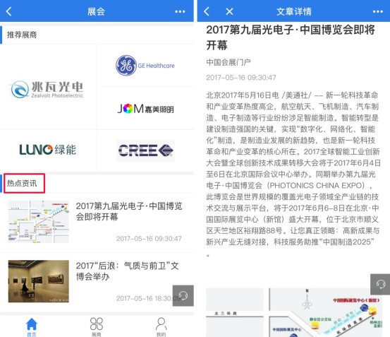 4.展會資訊功能:報道展示展會期間的最新事件,讓用戶更加詳細的了解展會的信息。