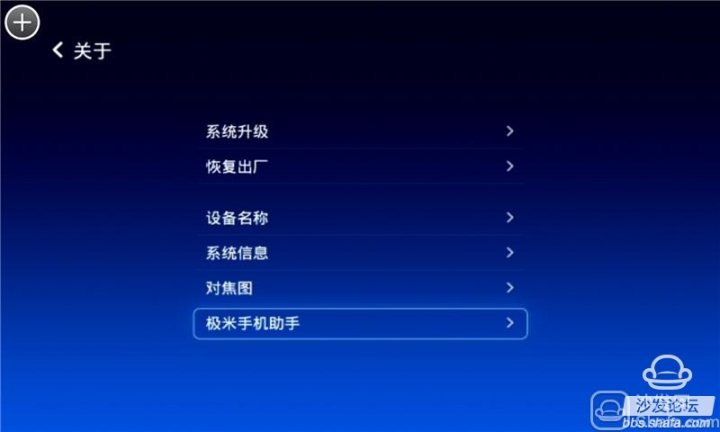 極米無屏電視 H1S通過手機遠程安置第三方應用,本教程適用于極米所有型號。【安置流程】①手機下載極米助手并連接極米設備→②手機下載沙發管家安置包→③用極米助手遠程安置沙發管家→④安置完成【操作步驟】1、打開極米無屏電視 H1S,依次打開系統設置→關于→極米手機助手