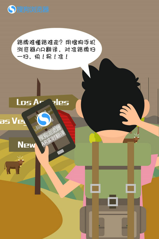 初到一個陌生的城市,迷路是常會發生的事情。明明街邊就有道路指示牌,卻因為看不懂英文而無法找到回酒店的正確標的目的,拖著行李不知道該往哪里走,也找不到來時的路,腫么辦?現在只要打開搜狗手機瀏覽器AR實時翻譯功能,對準路牌輕輕一掃,就會實時翻譯出中文結果,從此旅行的道路一掃而通。