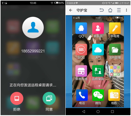 守護寶APP是守護寶自主研發的應用軟件,目前已在iOS和Android平臺上線,子女可通過相關平臺下載安置,安置完畢之后與父母的F5手機綁定,即可實現遠程桌面與遠程設置。子女通過遠程桌面功能可直接獲取父母的手機操作頁面,幫手父母解決使用過程中的各種問題,好比支付、軟件下載及升級、密碼重置等;遠程設置則是守護寶F5 的另一個貼心功能,子女可通過守護寶APP直接幫手父母修改通訊錄、連接WIFI,設置鬧鐘、流量監控、SOS緊急聯系人號碼設置等,真正實現了遠距離的 24 小時貼心陪伴。守護寶F5 智能手機與滴滴達成深度合作,子女可通過守護寶APP進行遠程操作,獲取父母的實時位置為其叫車,父母省心孩子放心。F5還有一個家庭共享相冊功能,子女可通過守護寶APP直接將本身手機上的照片推送給父母,并將這些照片遠程設置成父母的手機桌面或屏幕掩護,讓父母時刻了解子女的近況。
