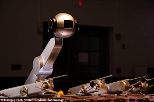Shimon機器人有四個手臂和八根棍子,可以在marimba上演奏和聲和和弦。它更像一個人類音樂家,更少關注下一個音符,更多地關注作曲的整體結構。