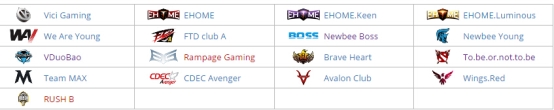 VG、LGD、LFY、CDEC、VGJ、iG.V、TEAM MAX,,而經(jīng)歷了換人風波的EHOME雖然擁有TI6冠軍成員,但由于排名靠后,很有可能要參加公開海選賽。