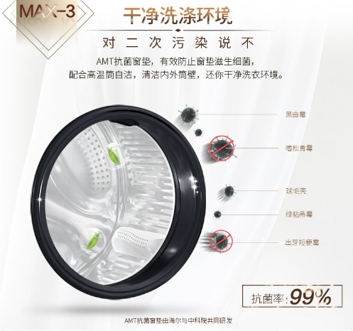 海爾 EG8012B39SU1洗衣機是一款上排水的變頻滾筒洗衣機,一級能效等級,自帶ABT自清潔系統,六大智能掩護。自潔凈系統包孕了雙噴淋系統、AMT防霉窗墊以及除菌洗功能。雙噴淋系統在洗滌過程中有效清洗窗墊窗屏,防霉窗墊有效防止洗衣機因潮濕而發霉。三重潔凈保障衣物和用戶的干凈,防止二次污染。