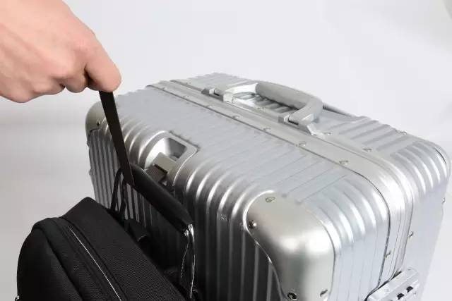 隱藏式掛鉤,掛鉤可承重5-7公斤重物 箱子上還隱藏著一個掛鉤,是拖背包用的,很多人旅游出差什么的,喜歡拖著行李箱,背著背包,裝了6公斤書的背包,用掛鉤掛著,來回拖拉,掛鉤的帶子品質非常不錯,結實耐用。