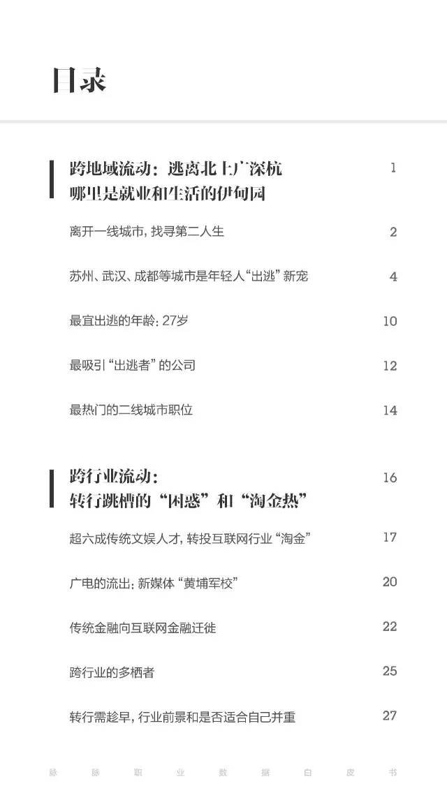 以下這份職業(yè)數(shù)據(jù)陳訴將給出一些你想知道的答案,包孕:最熱門的逃離目的地城市;最吸引人的下一家公司;最受逃離者歡迎的職位;BAT等互聯(lián)網(wǎng)巨頭的人才遷移圖譜,等等。