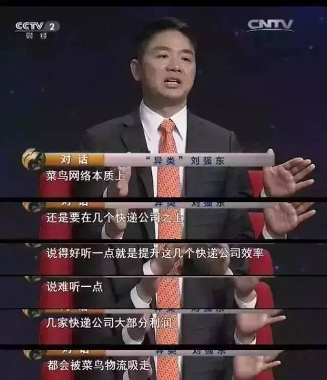而在2016年7月,劉強(qiáng)東在央視《對(duì)話》節(jié)目中直言,菜鳥物流就是在為幾家物流公司搭建系統(tǒng),說得好聽是提升這幾家快遞公司效率;說得難聽點(diǎn),這幾家公司的大部分利潤(rùn)都是被菜鳥物流給吸走。