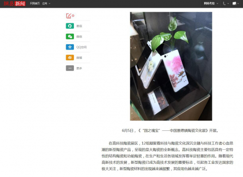 央視的朝聞天下在高科技陶瓷展區對初上陶瓷手機進行了報導,凝聚著科技與陶瓷文化深沉交融與科技工作者心血思潮的新型陶瓷產品,呈現的是大陶瓷的全新概念。