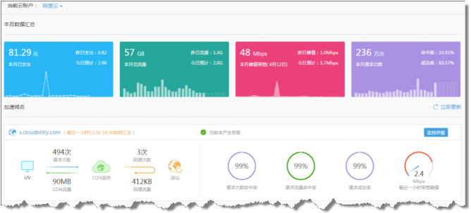 據悉,國內領先的云計算辦理平臺行云管家在最新迭代的2.7版本中加入了對公用云CDN的辦理模塊。行云管家產品總監郭志波對記者體現,隨著公有云市場的快速發展,用戶對于公有云的依賴性越來越高,作為當前最為主要的云資源之一,CDN正在被越來越多的企業接受并使用。