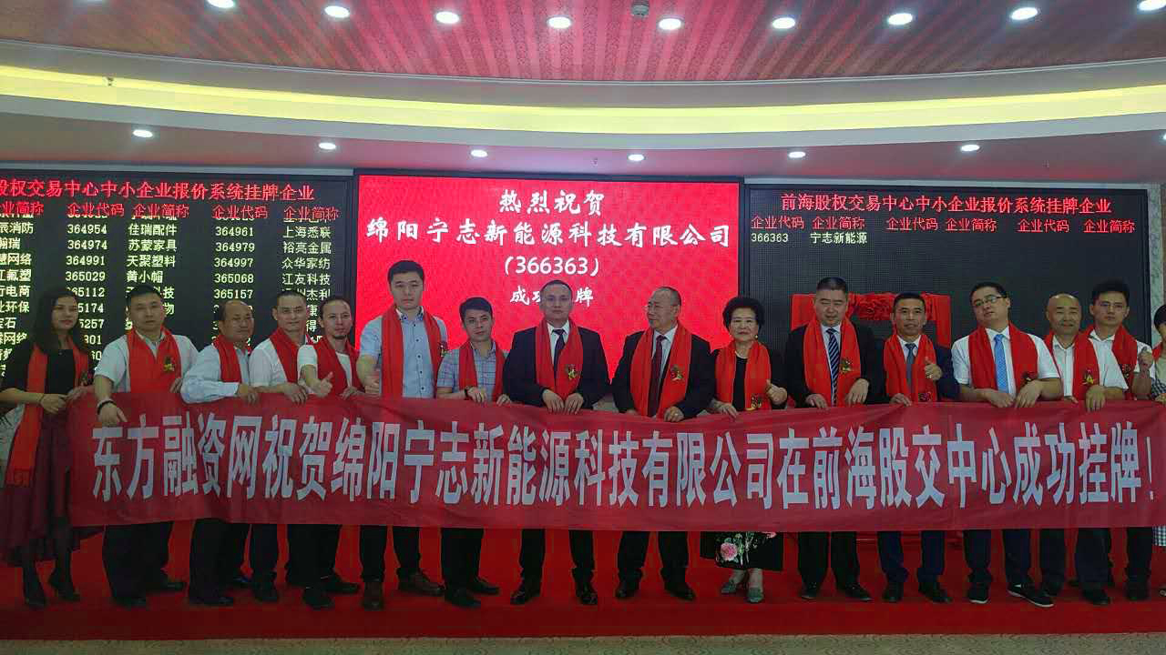 2017 年 5 月 25 日13:00,綿陽寧志新能源科技有限公司(以下簡稱寧志新能源)在東方融資網的傾力保舉下,在前海股權交易中心成功掛牌,股權代碼366363。