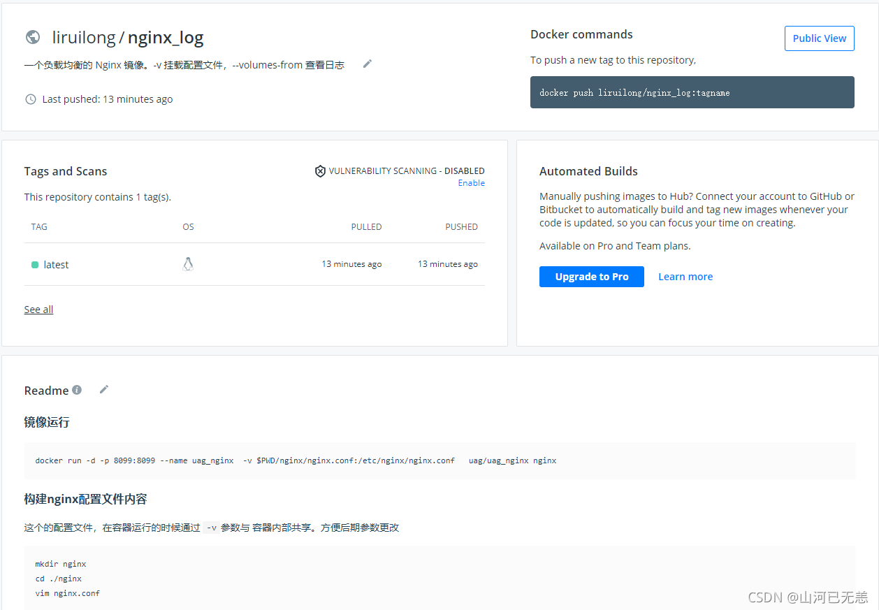 └─$ docker push liruilong/nginx_log:tagname # 拉去鏡像