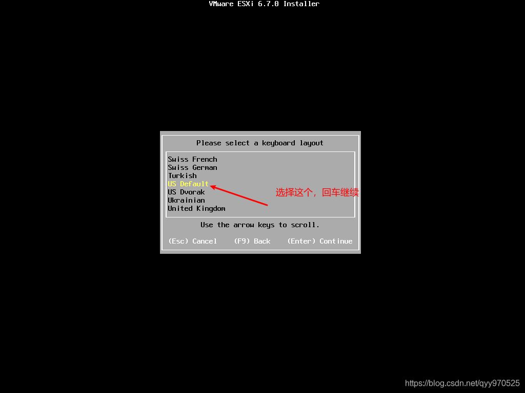 6.這里一般選擇US default(美式)鍵盤,按回車繼續