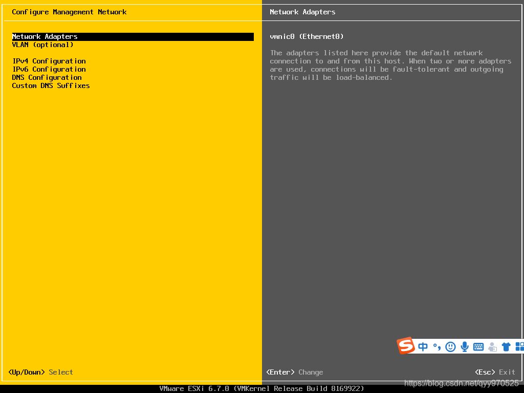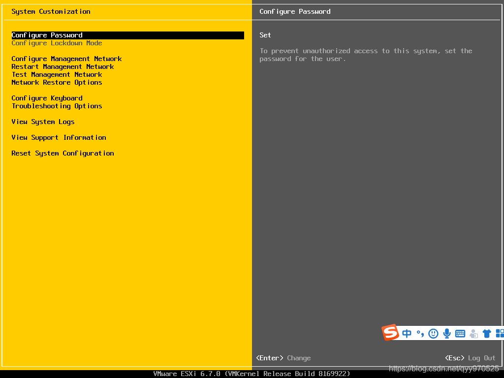 13.進入選項界面:Configure Password (配置root密碼) Configure lockdown mode(配置鎖定模式)Configure Management Network (配置網絡)Restart Management Network (重啟網絡)Test Management Network (使用ping測試網絡)Network Restore Options (還原配置)Troubleshooting Options (故障排查選項)View System Logs (查看系統日志) Reset System Conf iguration ESXi (出廠設置)
