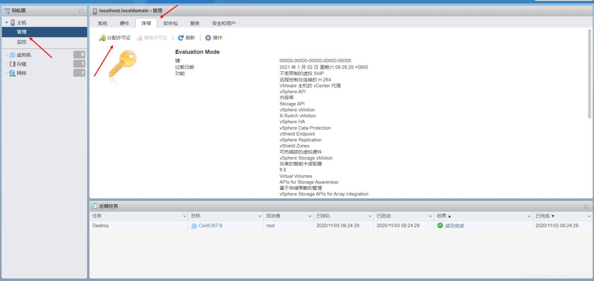 1.我們進入虛擬化平臺,首先要分配許可證,點擊主機管理>許可>分配許可證,許可證書可在網上查詢