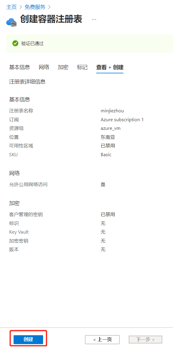 在免費服務列表找到容器注冊表,點擊“創建”。