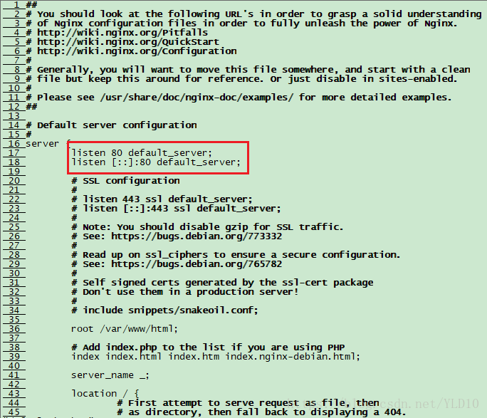 打開一看,懵了,哪里有 listen 80 這一行呢?